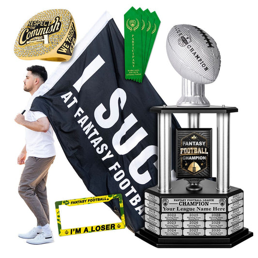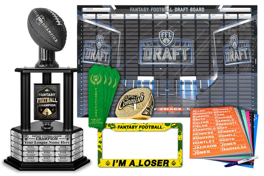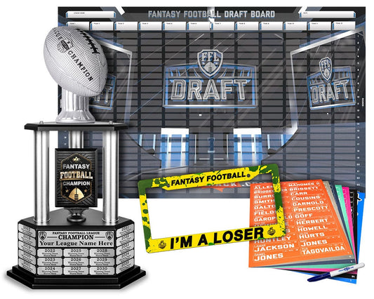 Make your next fantasy football season unforgettable with a classic draft board at your live draft party! Championship Ring + Draft Board bundles available.