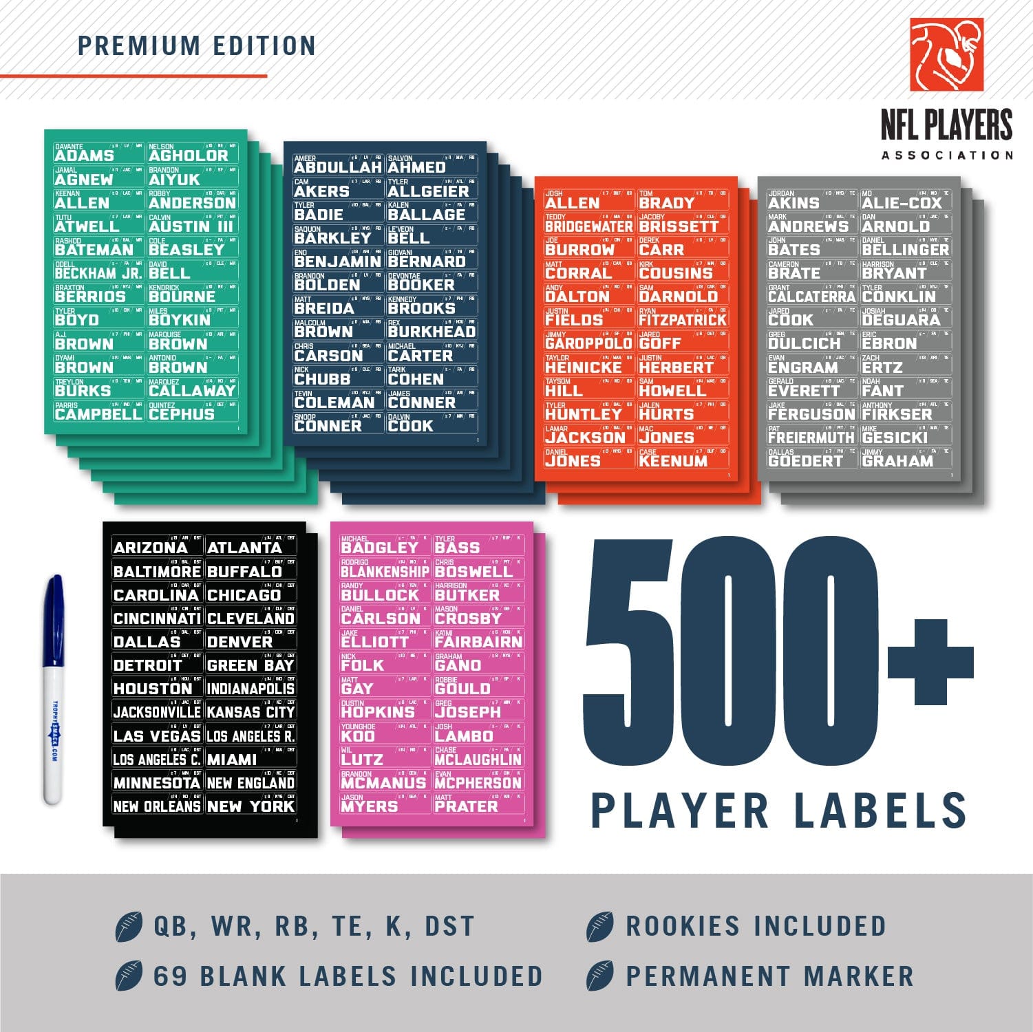 + Over 500 4”x1” Player Labels including full Rookie class.