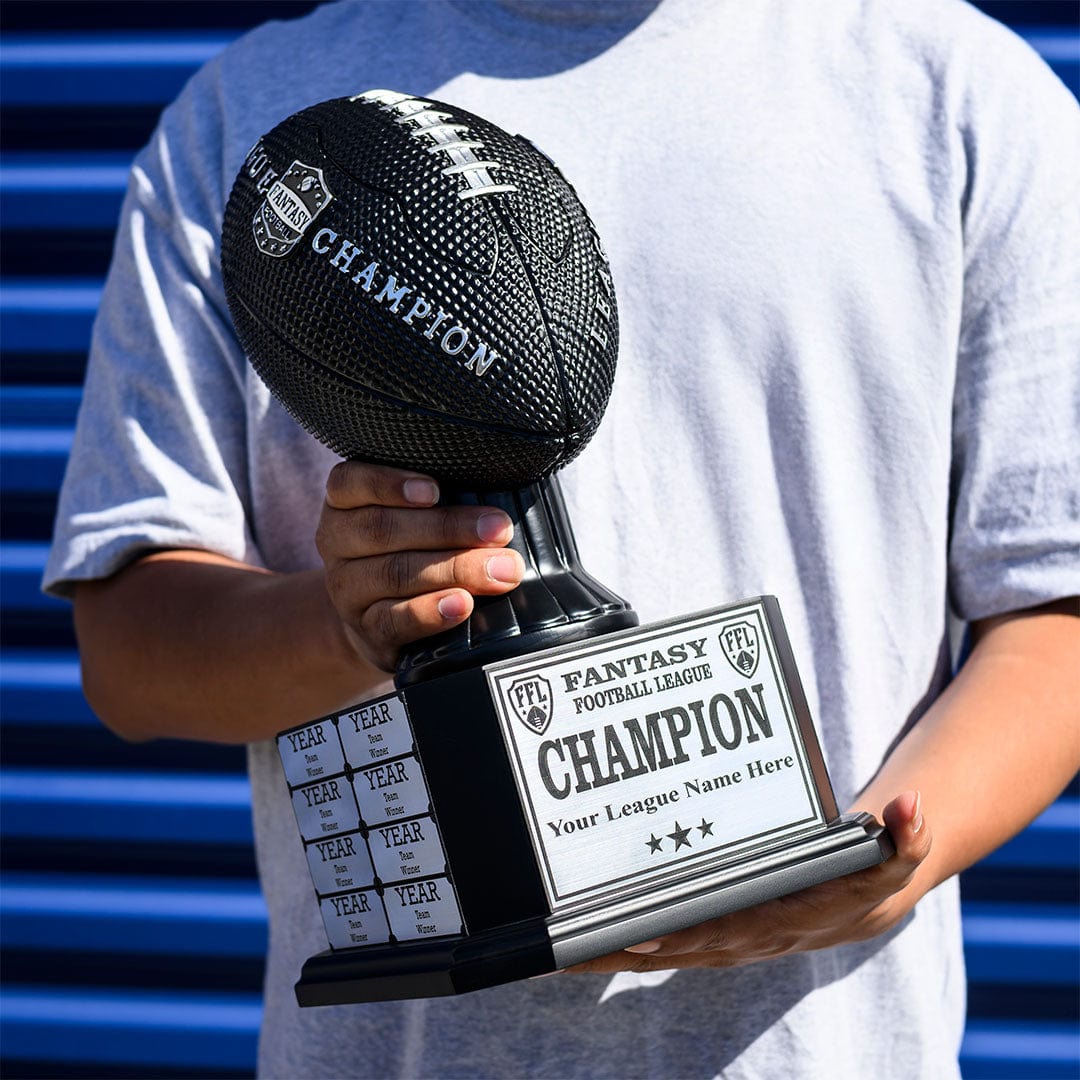 Our 15" Perpetual Fantasy Football Trophy - Black Football isn’t for the faint of heart. This powerful Fantasy Football Trophy sits on a 16-year perpetual base that commands the attention of all. It also reminds everyone in your league how bad you kicked their asses. Our Perpetual Football designs are not available anywhere else in the world…talk about an exclusive opportunity for greatness!