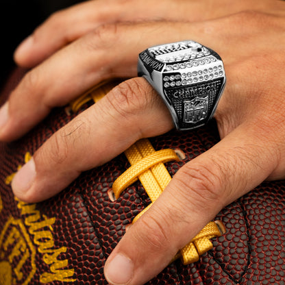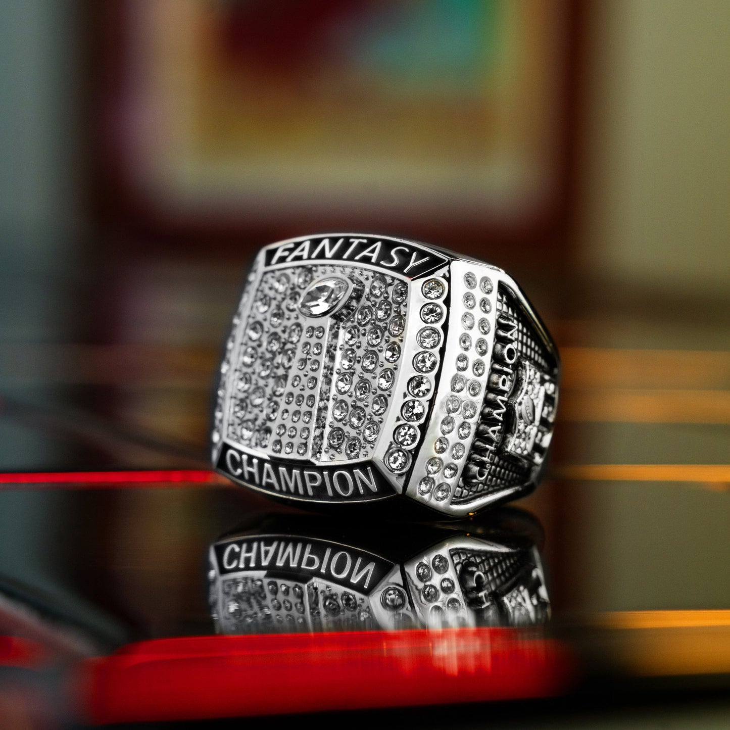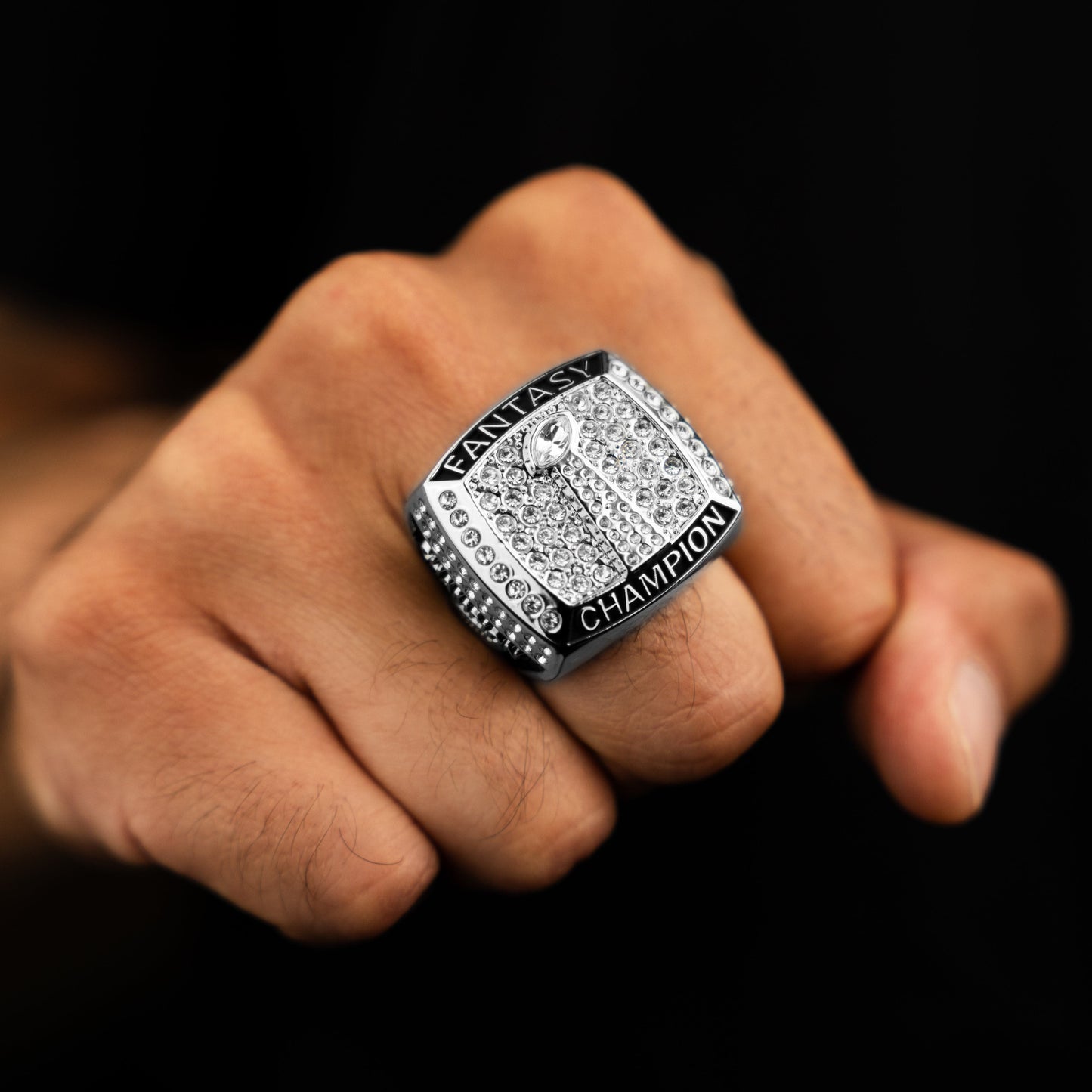 Our Bling Ring Championship Ring looks great on its own or put on display in one of TrophySmack's Championship Ring Display Cases. Show the world who the real league champion is with this fantasy football championship ring.
