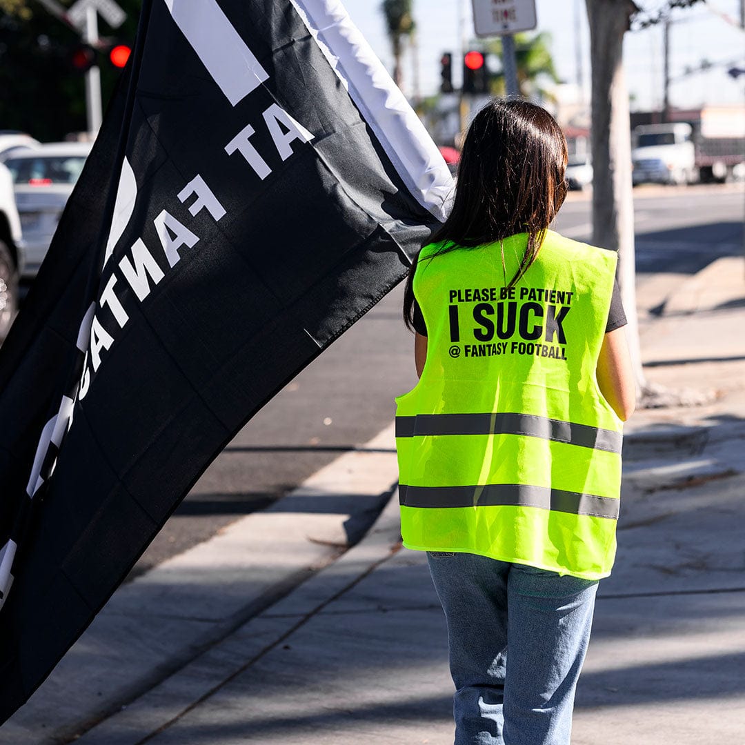 Your fantasy football league mate came in last place for the season. Now it's time to face the humiliating consequences. TrophySmack is proud to present the Fantasy Football Loser Vest! Embarrass them in public by making them wear this (often snug) bright yellow vest that proclaims "Please Be Patient. I Suck at Fantasy Football". Prepare to take photos. This shame is priceless.