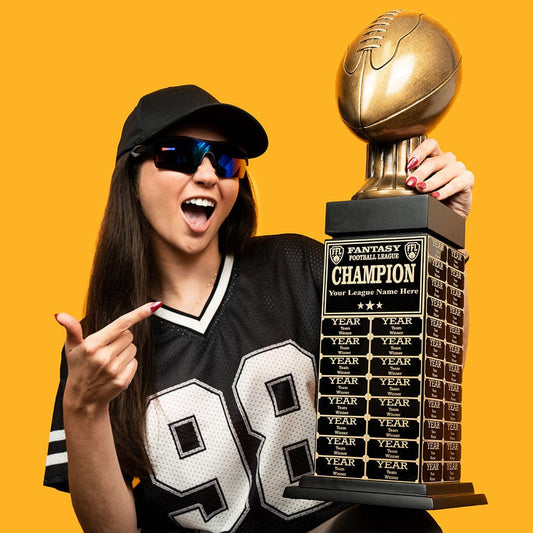 24" Fantasy Football Tower Perpetual Trophy - Black/Gold Engravings