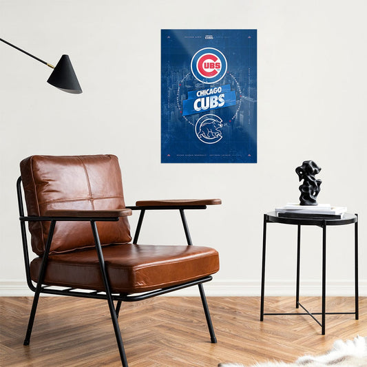 Chicago Cubs City Skyline Stacked - MLB Metal Wall Art