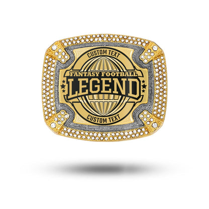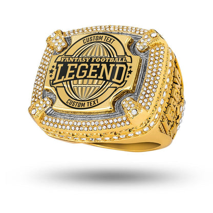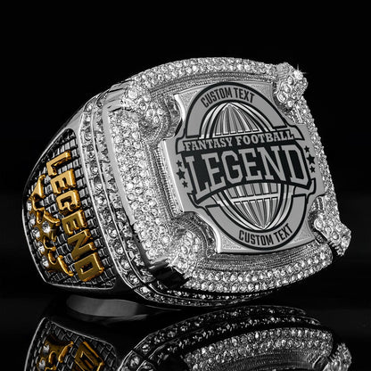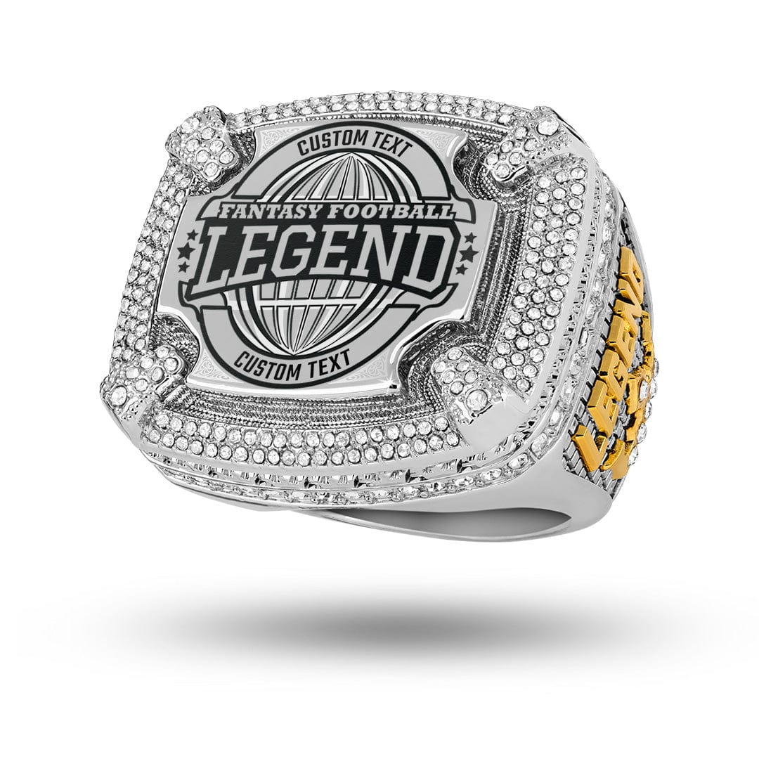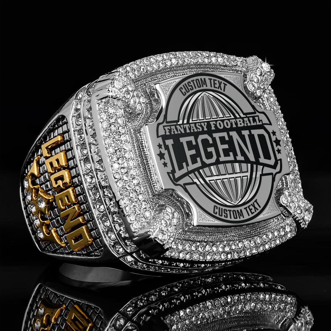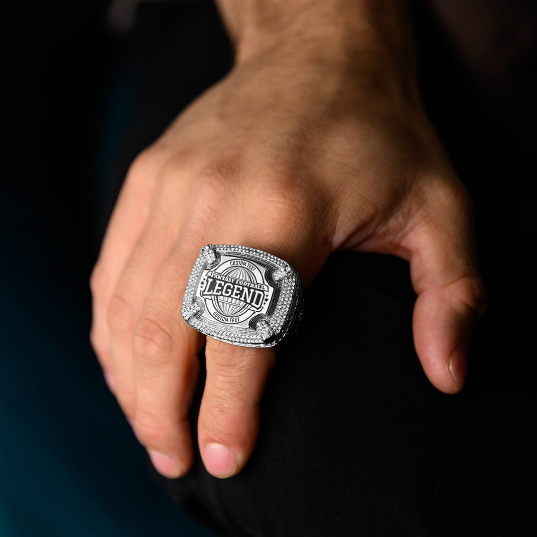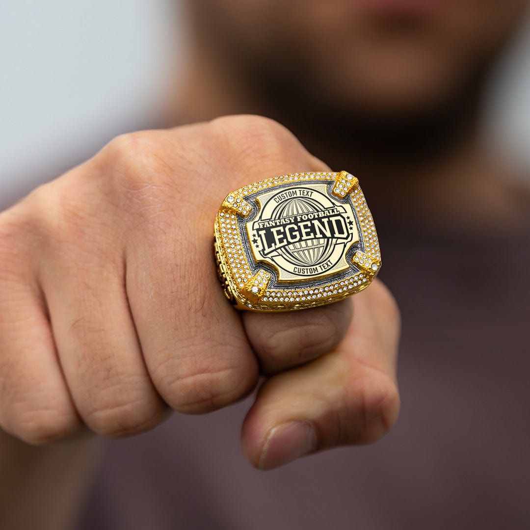 Whether proudly displayed on game day or cherished as a keepsake in a custom ring case, the Fantasy Football Custom Legend Ring is more than just an award – it's a badge of honor... a testament to the indomitable spirit of your fantasy football league champion. Celebrate your league's victor in style and elevate the competition with an award worthy of their gridiron greatness. Victory never looked so dazzling!