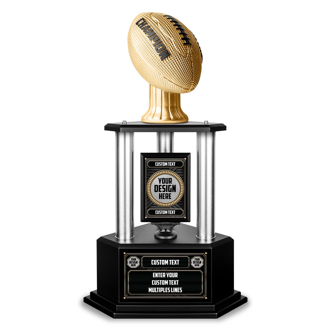 Make the ultimate upgrade for your Fantasy Football league to our newest trophy concept with endless customizations! Stand out from the rest with a trophy as unique as you are. Choose your topper, personalize the center and front plaques, and give those columns some SHINE!
