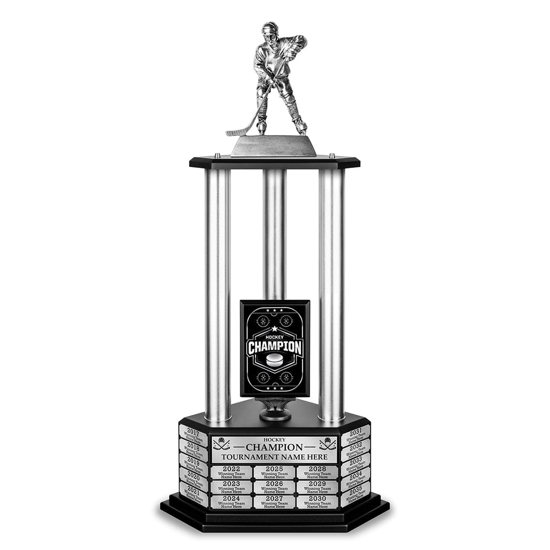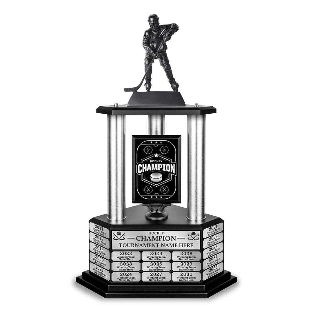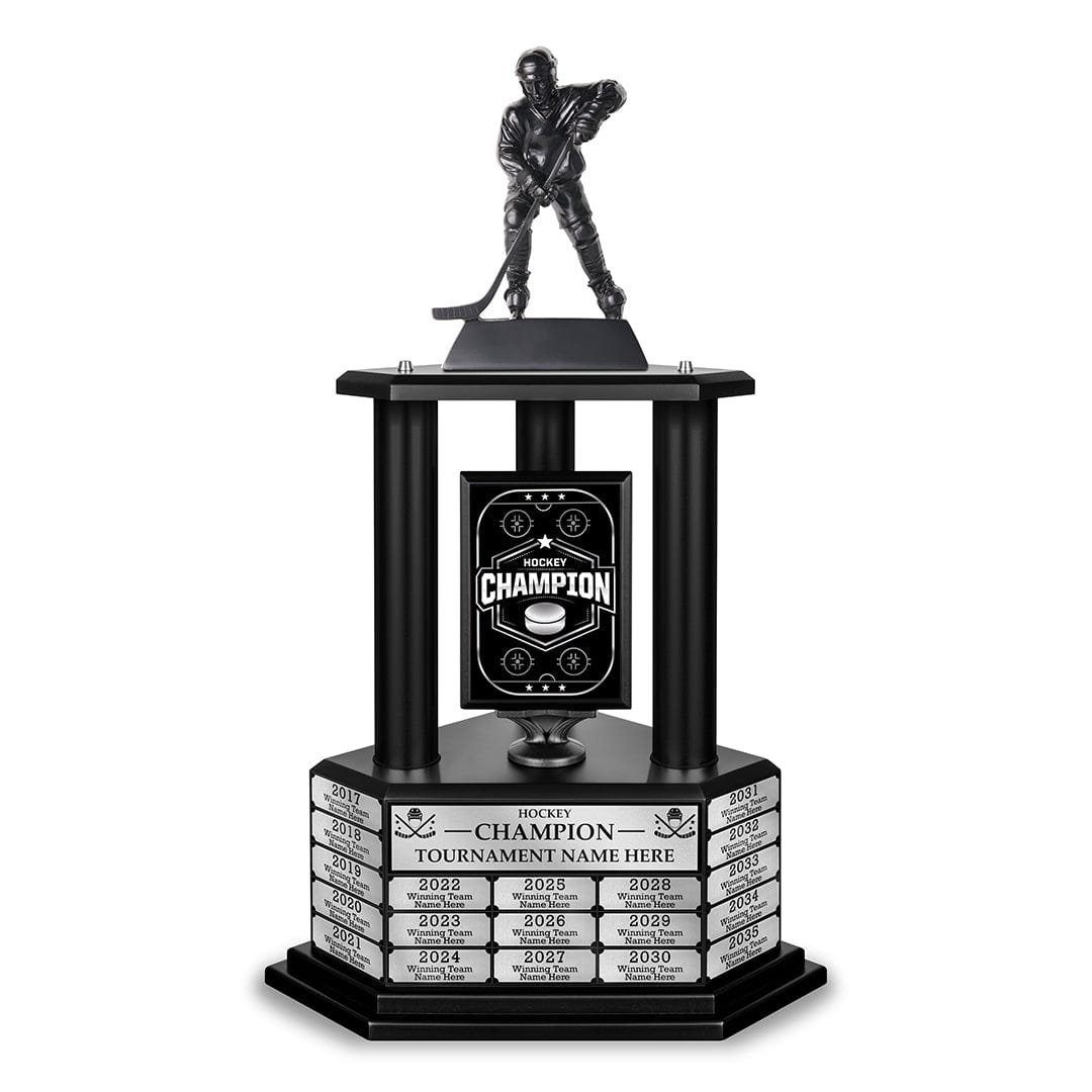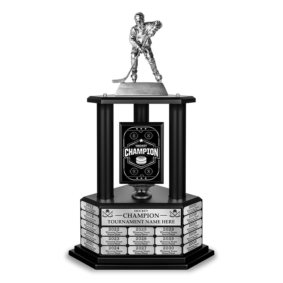 Recreational, club, and youth leagues all deserve a hockey trophy they can be proud of. Celebrate your championship season with a customizable hockey trophy. Immortalize the champs year after year by applying an easy-to-use engraved nameplate to this perpetual trophy.