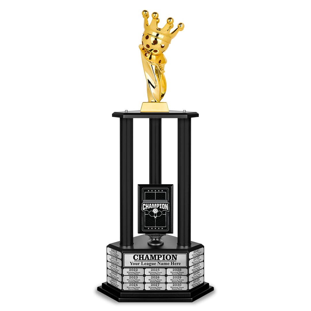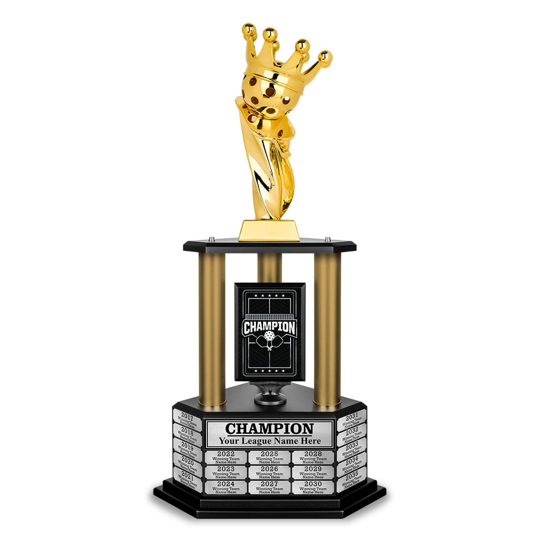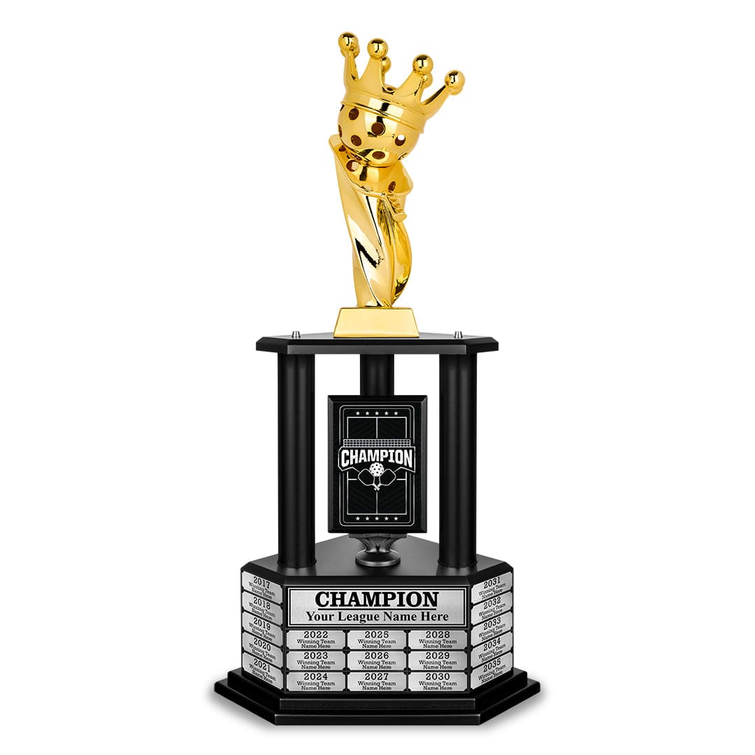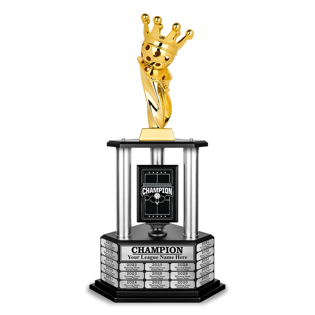 The 26" - 36" Perpetual Pickleball Trophy is your ultimate victory statement. More than just an award, it’s a powerful tribute to your skill and dedication. Built to last and designed to impress, this trophy makes every win a celebrated milestone. Make your success unforgettable with a trophy that truly honors your greatness.