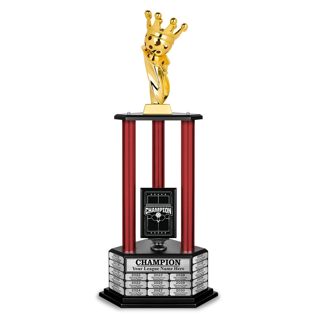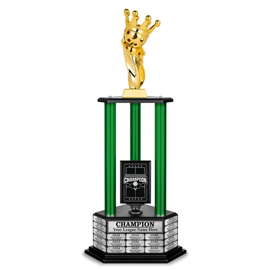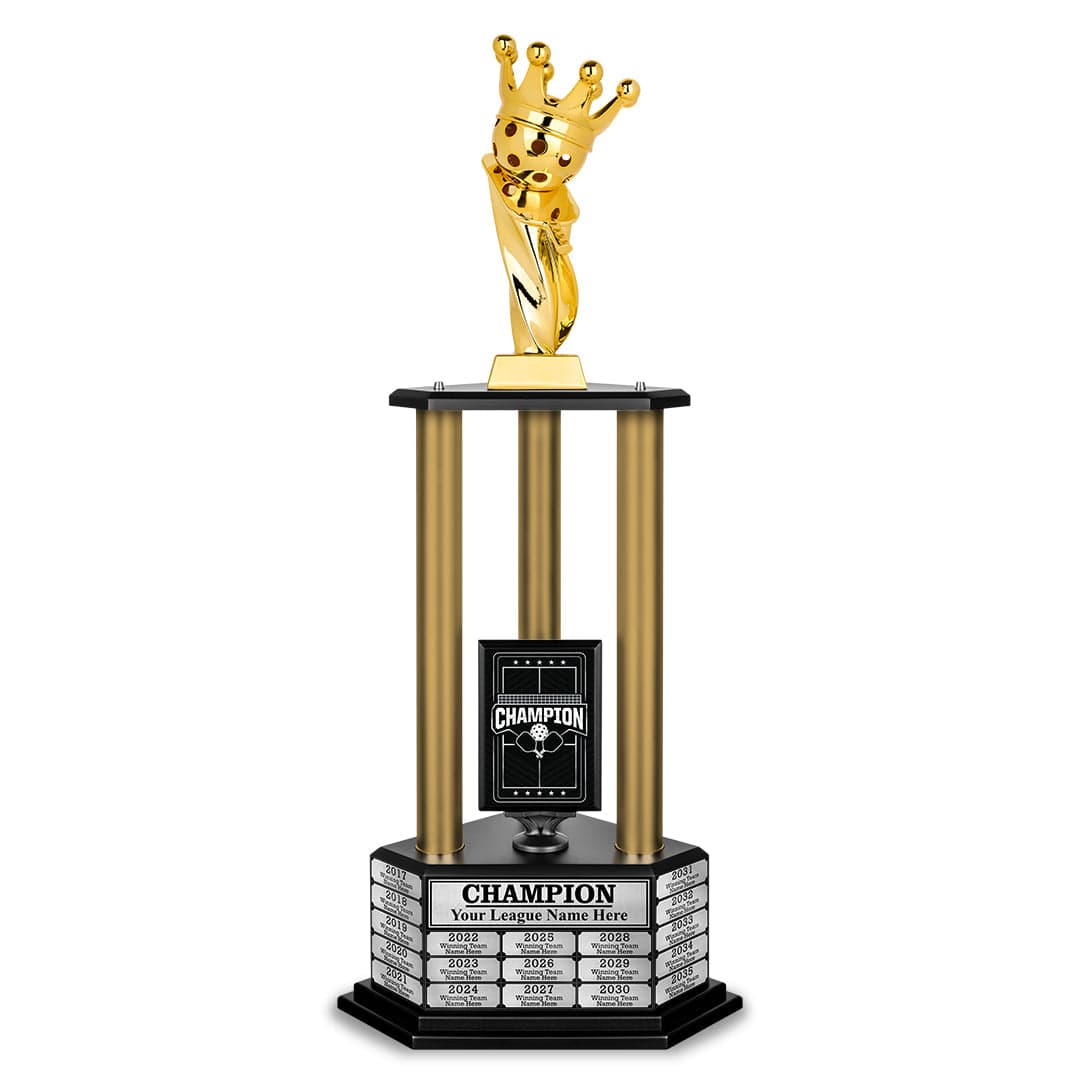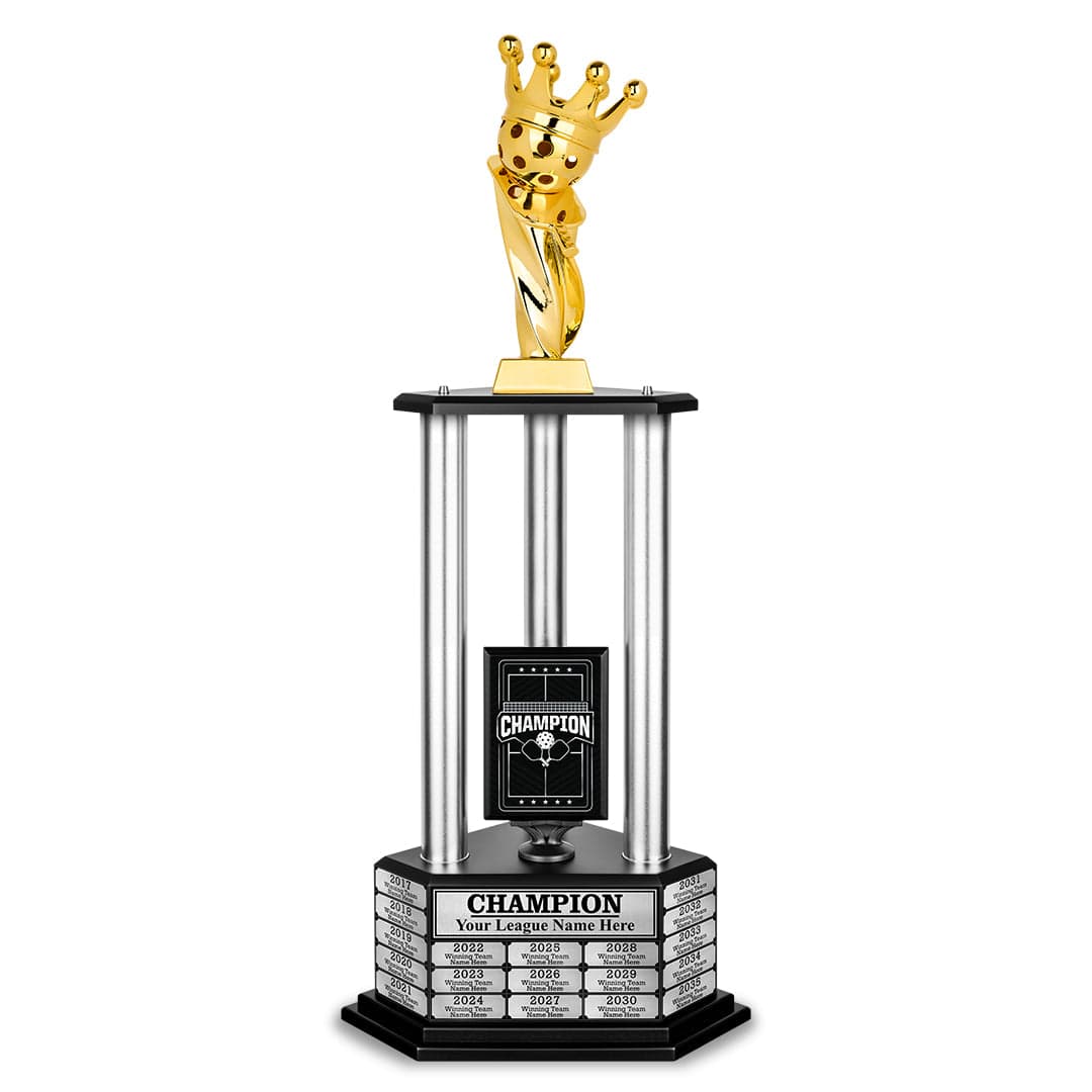 The 26" - 36" Perpetual Pickleball Trophy is your ultimate victory statement. More than just an award, it’s a powerful tribute to your skill and dedication. Built to last and designed to impress, this trophy makes every win a celebrated milestone. Make your success unforgettable with a trophy that truly honors your greatness.