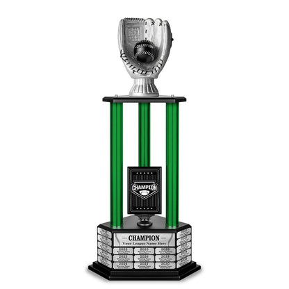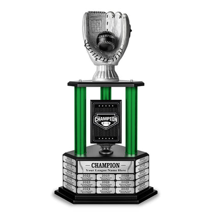 Whether it's a rec league, little league, or fantasy baseball league, we've got a trophy to commemorate your winning season. Customize it with your team name and immortalize the champs for years to come by adding easy-to-apply engravings to this epic perpetual baseball trophy.