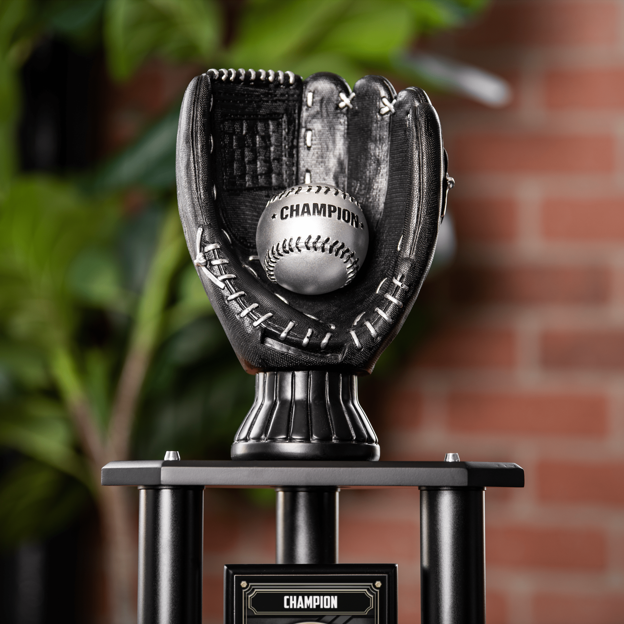 Our Baseball Trophy isn’t for the faint of heart. This powerful Trophy commands the attention of all and reminds everyone in your league how bad you kicked their asses. Our glove designs are not available anywhere else in the world…talk about an exclusive opportunity for greatness!
