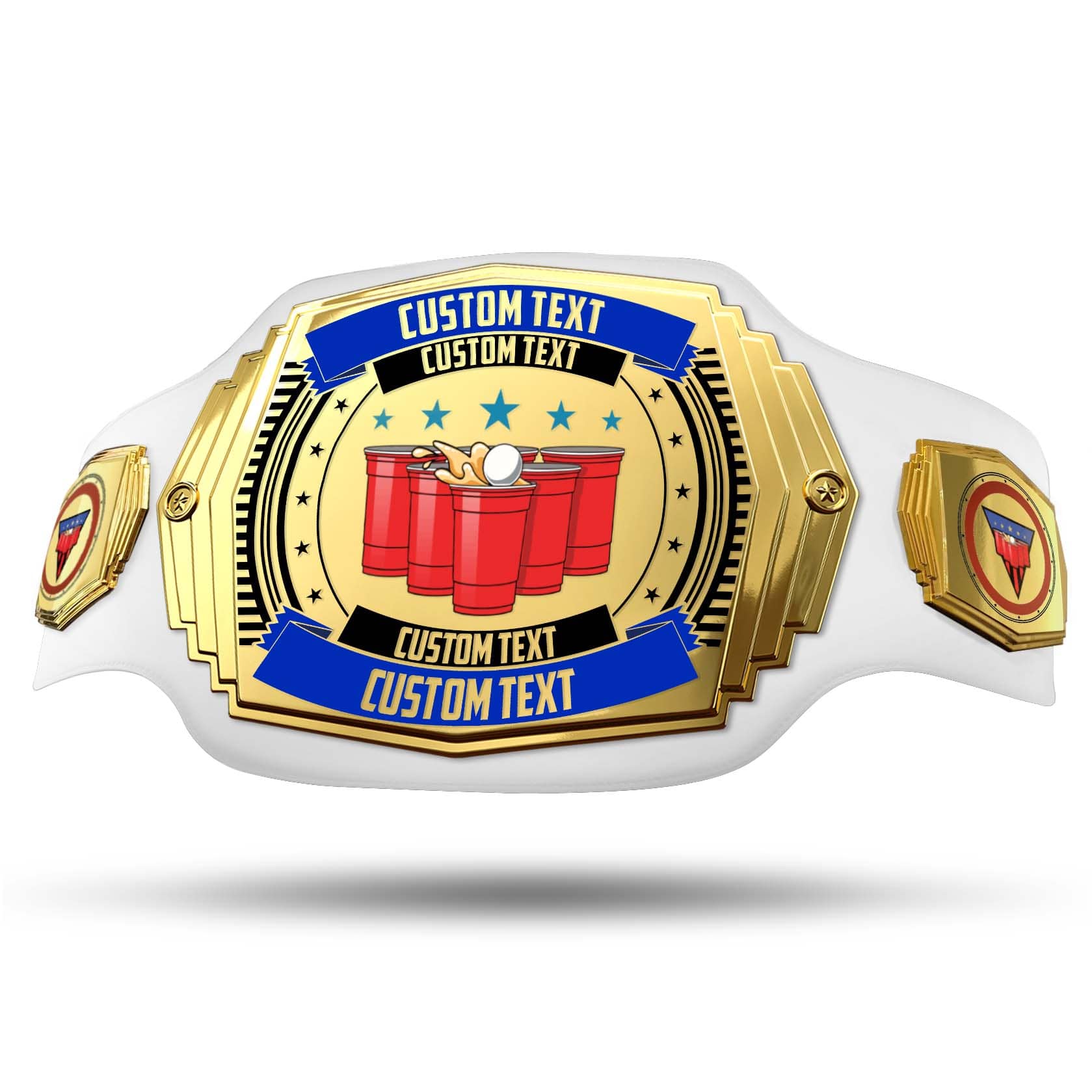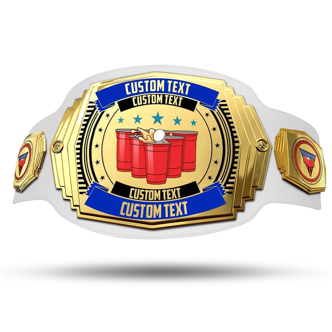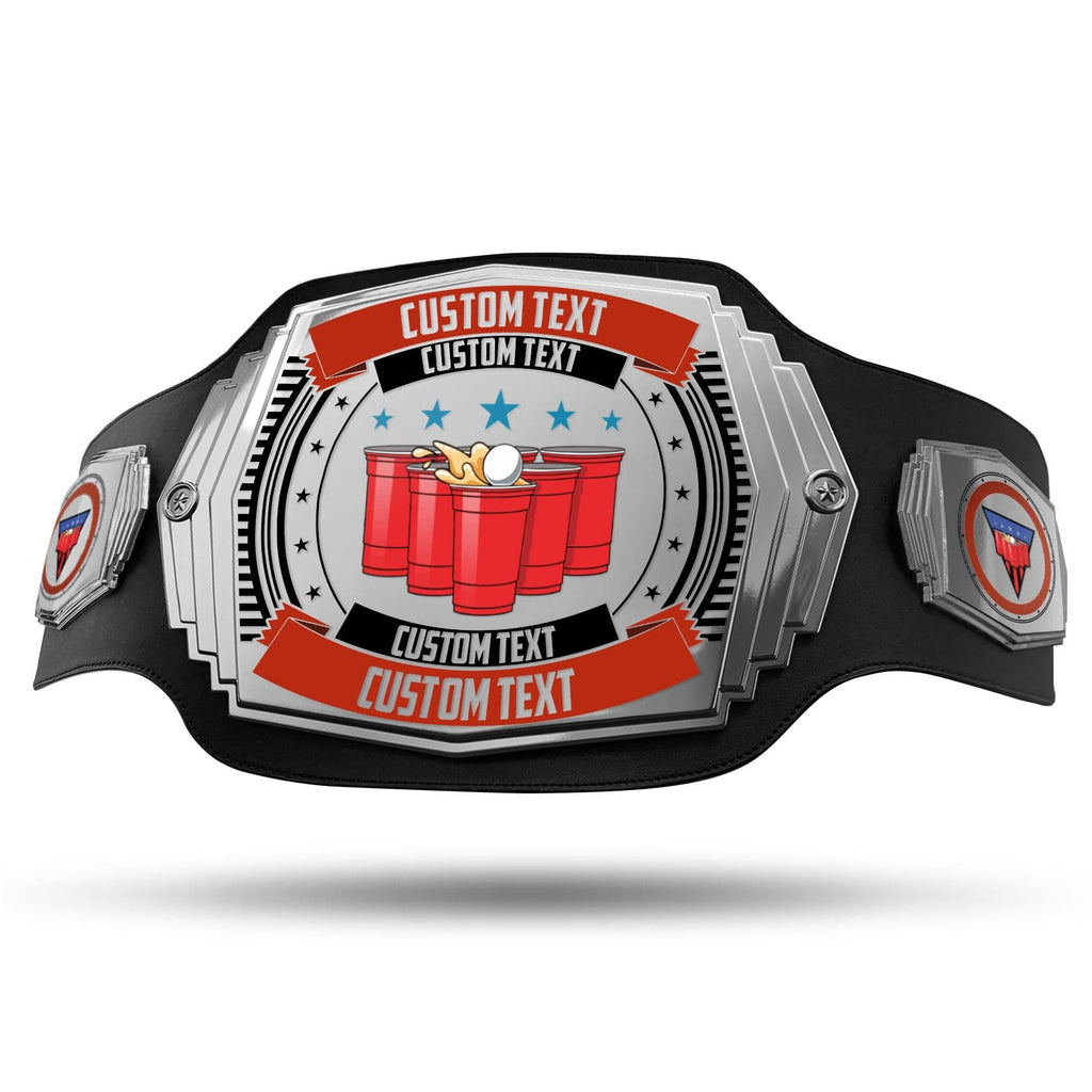 Our championship belts can't be beat. This 6lb, chromed-out bad boy can be worn over you shoulder, around your waist, or hoisted victoriously overhead. Easy customization and engraving options make this title belt the most beer pong gift on the market.