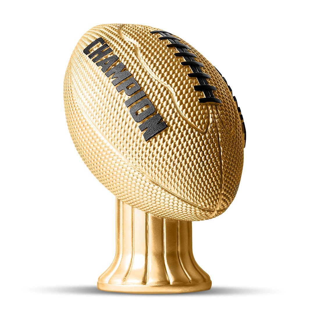 Tired of passing the same boring trophy year after year? Tired of being a fratata in general? Our custom Swap Tops can be changed each year to represent your hard earned victory. Our Champion Football Trophy Topper is meant to sit upon a football trophy and is exclusive to TrophySmack.
