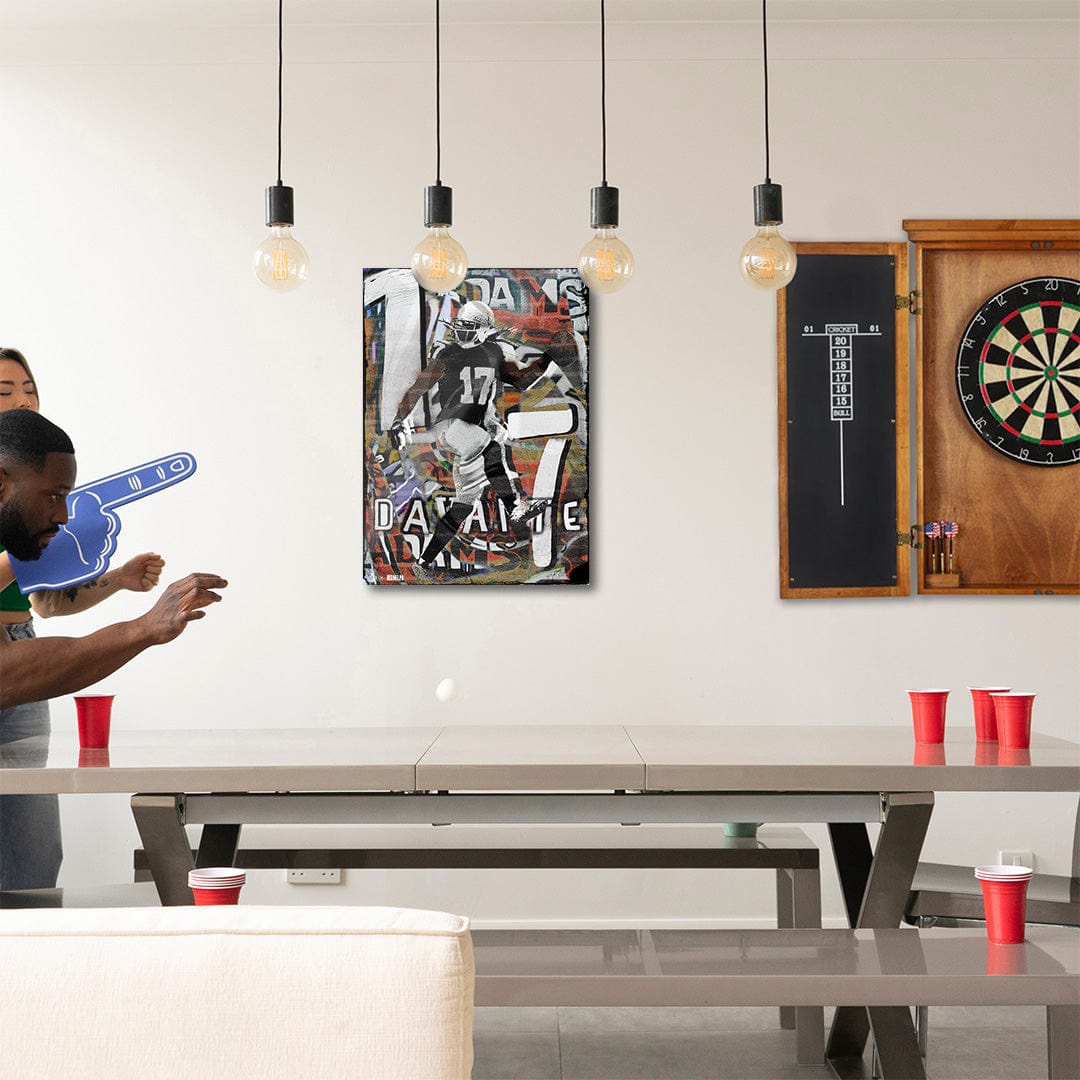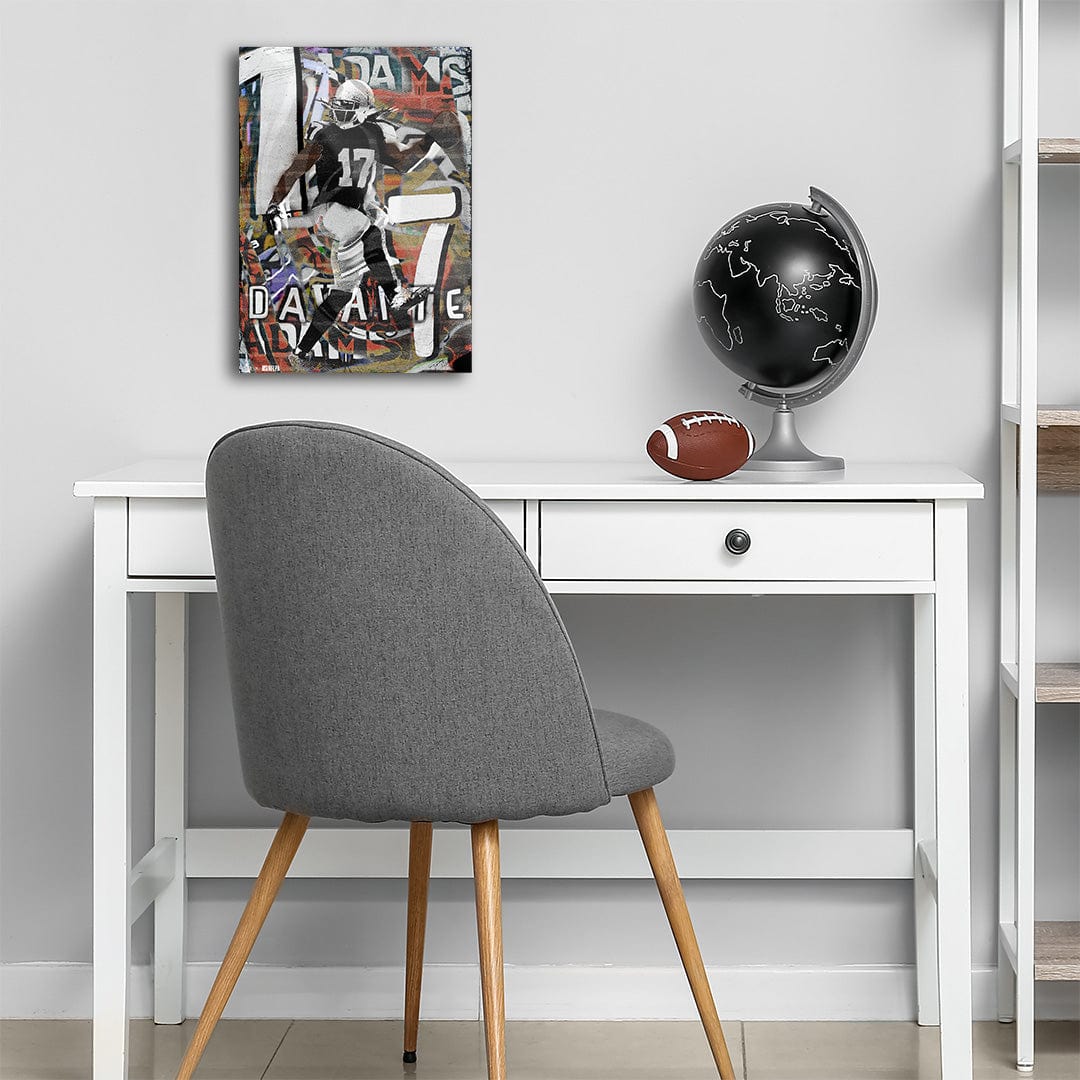"Davante Adams Stencil Mural" is a work of art for football lovers. This striking piece is printed on stainless steel, and its magnetic wall mounting system ensures a hassle-free display. Add some interest to your otherwise boring wall with WallSmack, by TrophySmack. The NFLPA officially licenses this high-gloss, sturdy, metal masterpiece, so you know it's legit.
