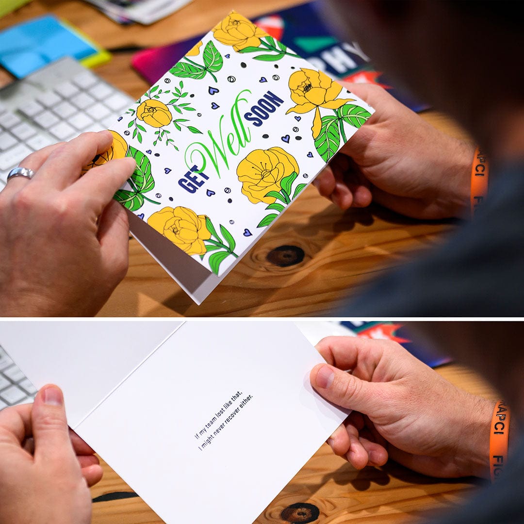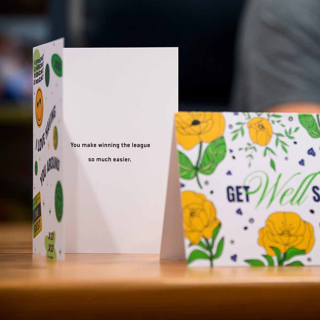 Each Smack Talk Fantasy Football Greeting Card has a cheeky quip guaranteed to remind your league’s losers of their epic fails all season long. Whether it's the guy who drafted a kicker in the first round or the team that just couldn’t catch a break, these cards have got you covered.