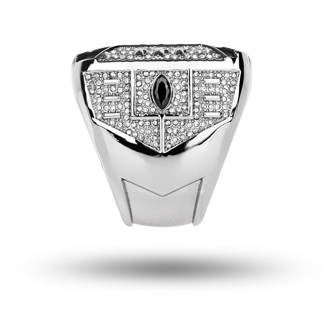 The Elite Championship Ring symbolizes your unparalleled victory and unmatched prowess in the realm of fantasy football. Whether you're hoisting it high in victory or showcasing it with pride, our Fantasy Football Championship Ring is more than just an accessory – it's a tangible testament to your dedication, skill, and unrivaled dominance in the fantasy football arena. Victory has never looked so magnificent! Its intricate design, heafty weight, and sparkling stones make it a championship ring that leaves no doubt who the real champ is.