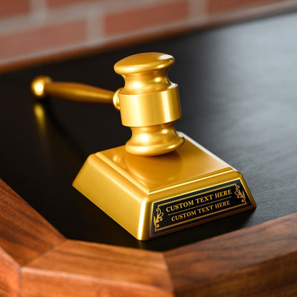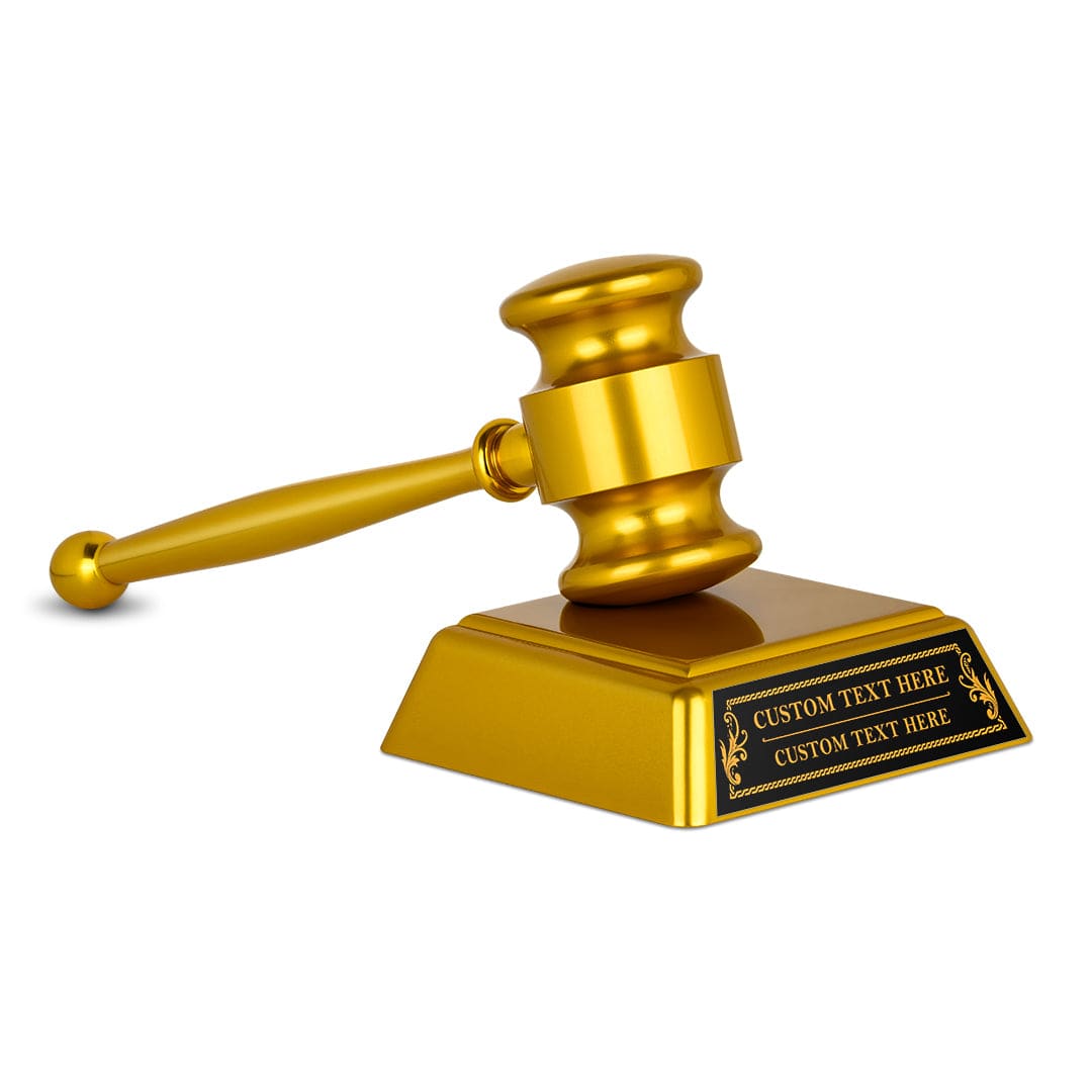 Bring your next league meeting to order with the Golden Commissioner's Gavel. This heavyweight, gold-tone gavel will hammer out any dispute with authority. Add a personalized touch by customizing the front plate of the matching sound block. Whether you're the Commissioner of a Fantasy Football League or the head of a Human Resources department... you need the Commissioner's Gavel.