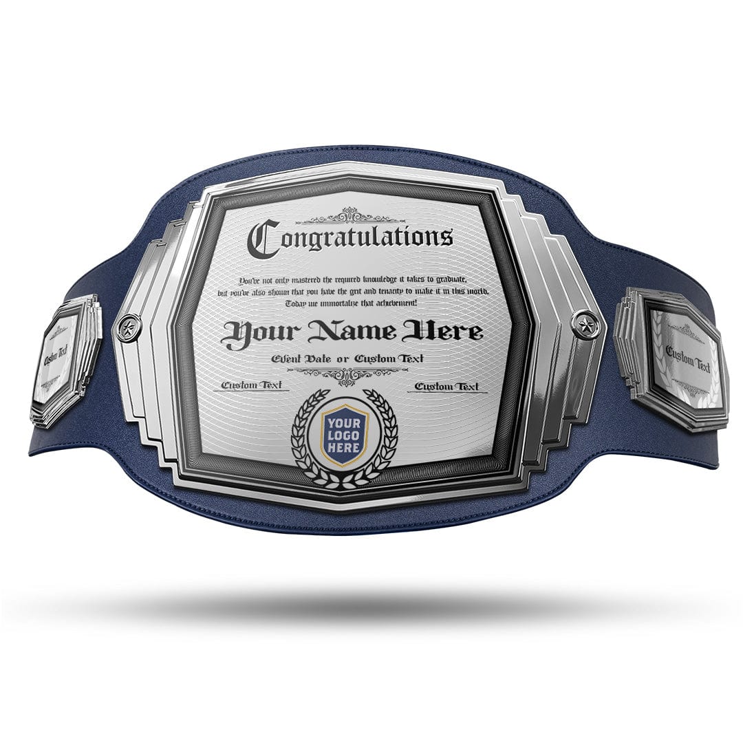 There are few moments in life worth memorializing and graduation is one of them. Give your graduate an epic gift that they'll never forget! The Graduation Custom Championship Belt isn't one of those weak knock-off title belts you've seen floating around the Internet. Our Championship Belt is made to stand the test of time - weighing in at over 6 pounds of quality materials, such as supple faux leather. Produced in the USA, by real people at TrophySmack's California headquarters, you're sure to get a graduation gift made with care.