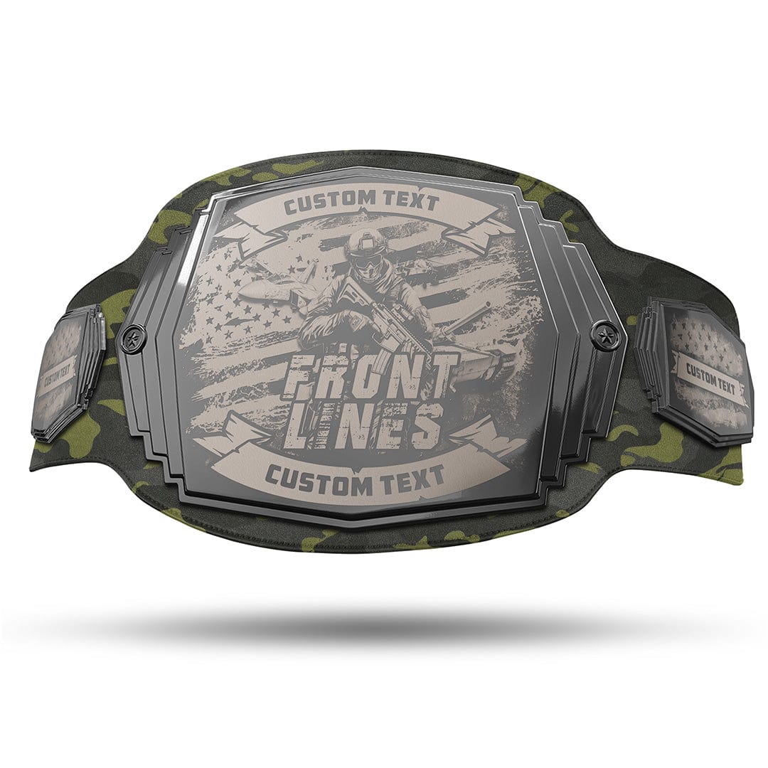 Celebrate a hardworking Military Service Member because a hero should never settle for one of those weak title belts floating around the web. Our championship belts crush the competition. We provide the most unique and easy to design options available to customize your belt to honor the military service member in your life.