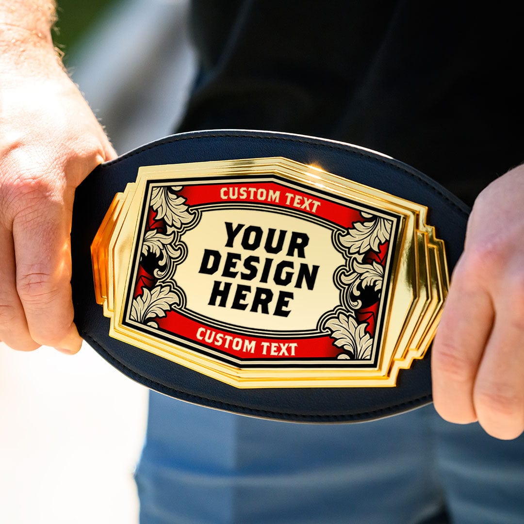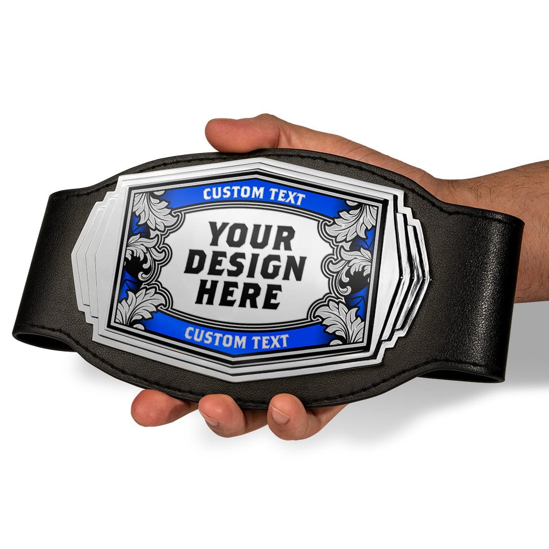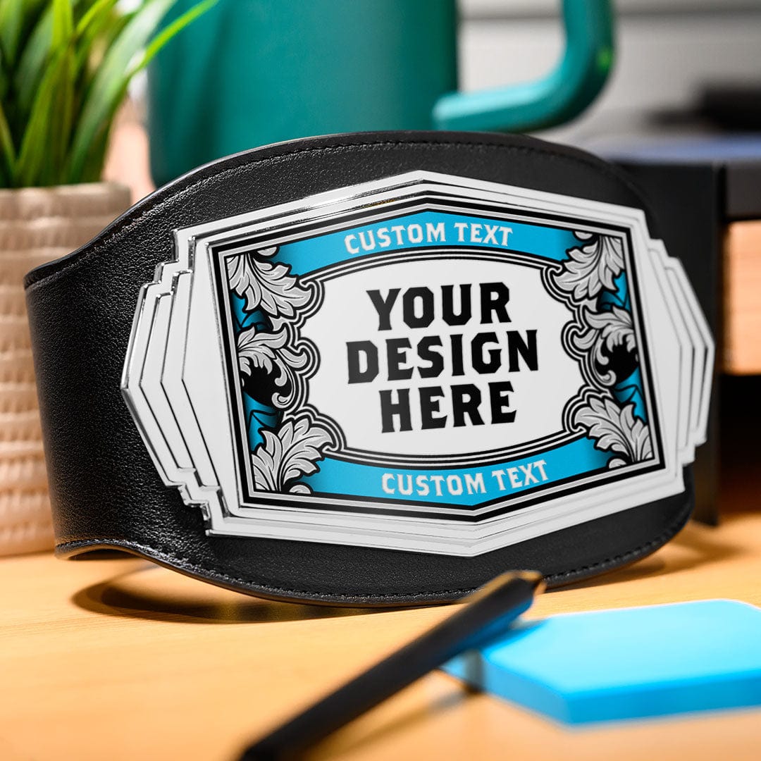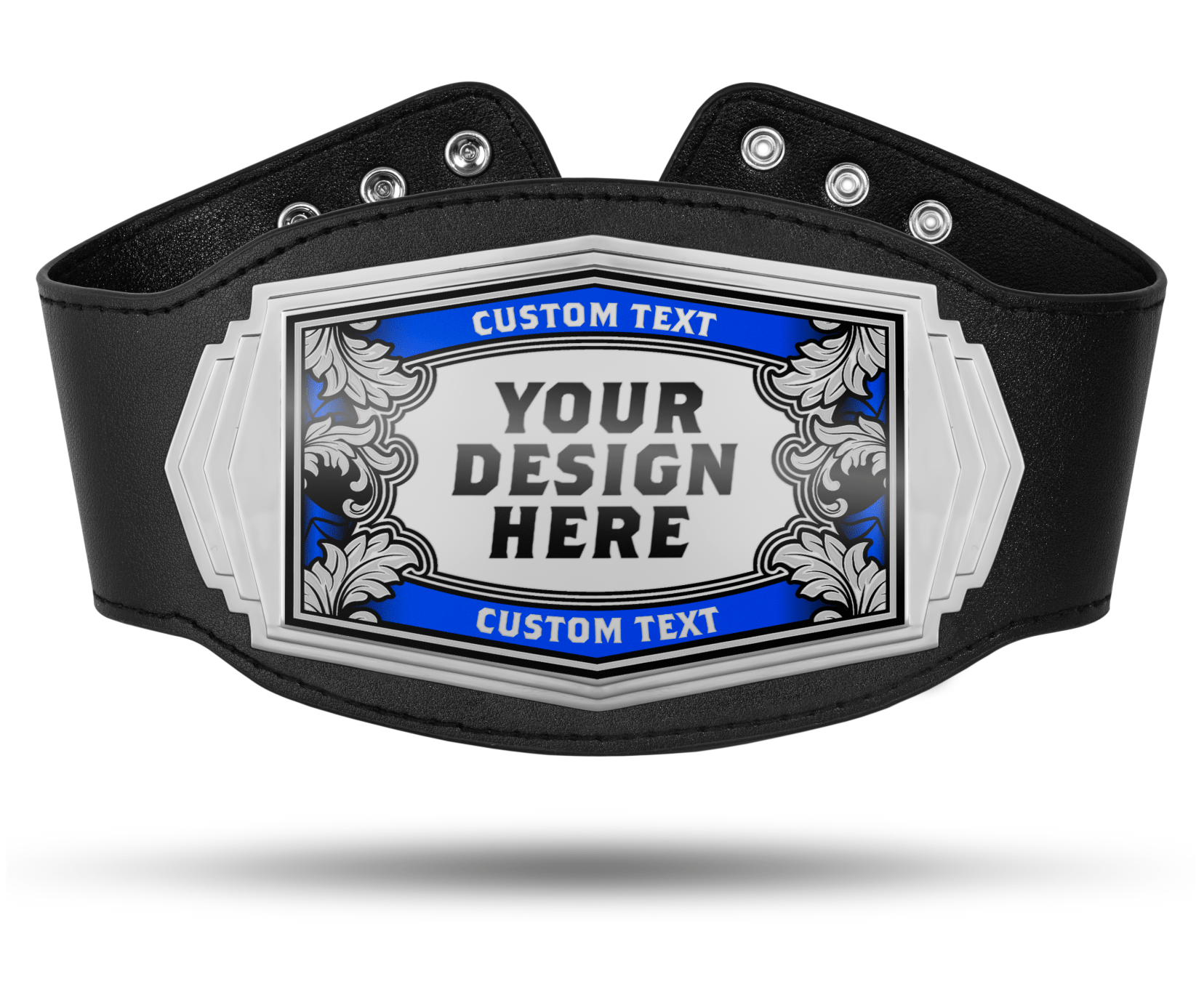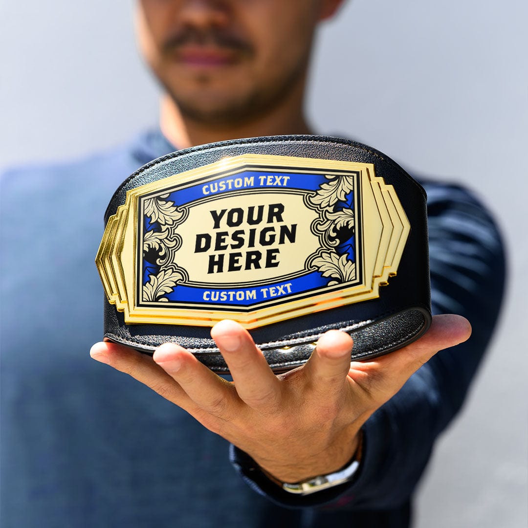 Customize our Mini Regal Championship Belt. Check out our updated mini belt template, fit for royalty. We provide you with easy-to-design options to customize your mini title belt for any display or gifting occasion.