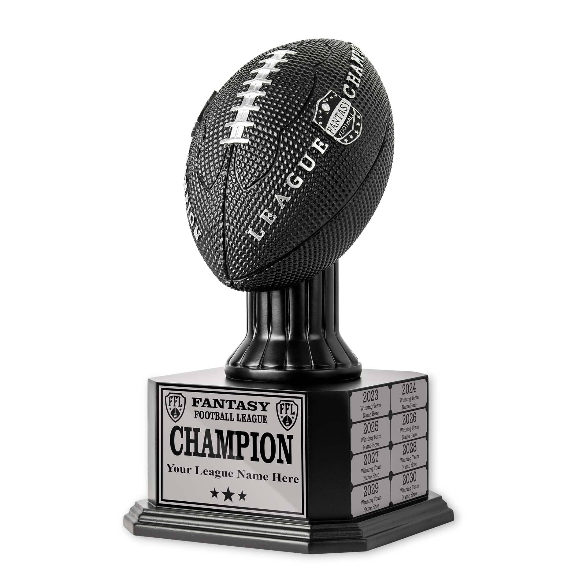 Our 15" Perpetual Fantasy Football Trophy - Black Football isn’t for the faint of heart. This powerful Fantasy Football Trophy sits on a 16-year perpetual base that commands the attention of all. It also reminds everyone in your league how bad you kicked their asses. Our Perpetual Football designs are not available anywhere else in the world…talk about an exclusive opportunity for greatness!