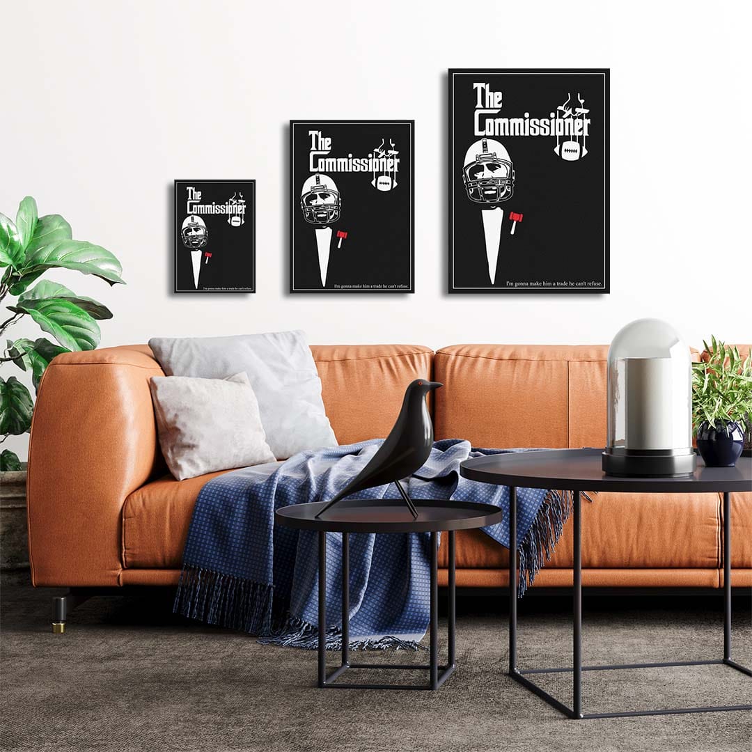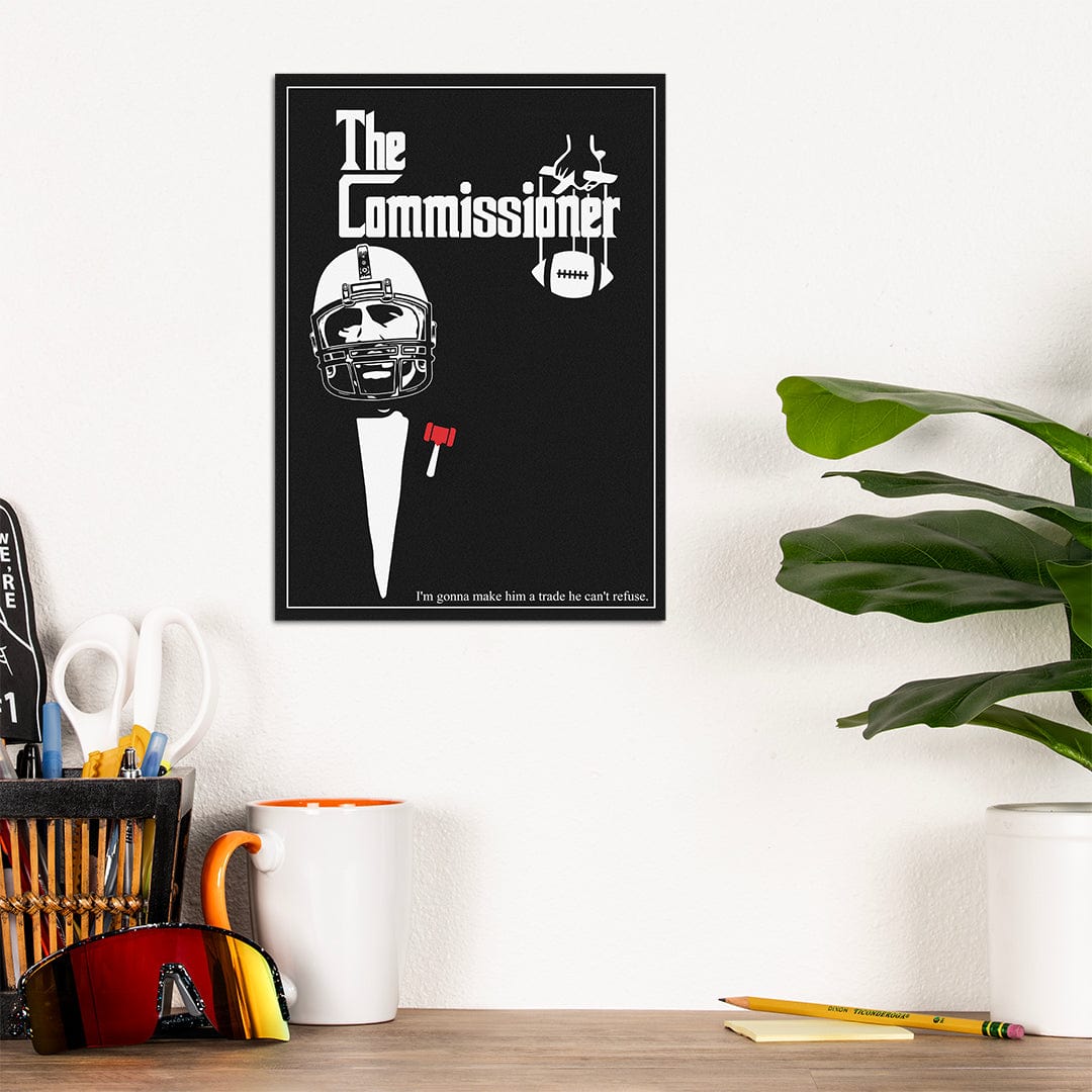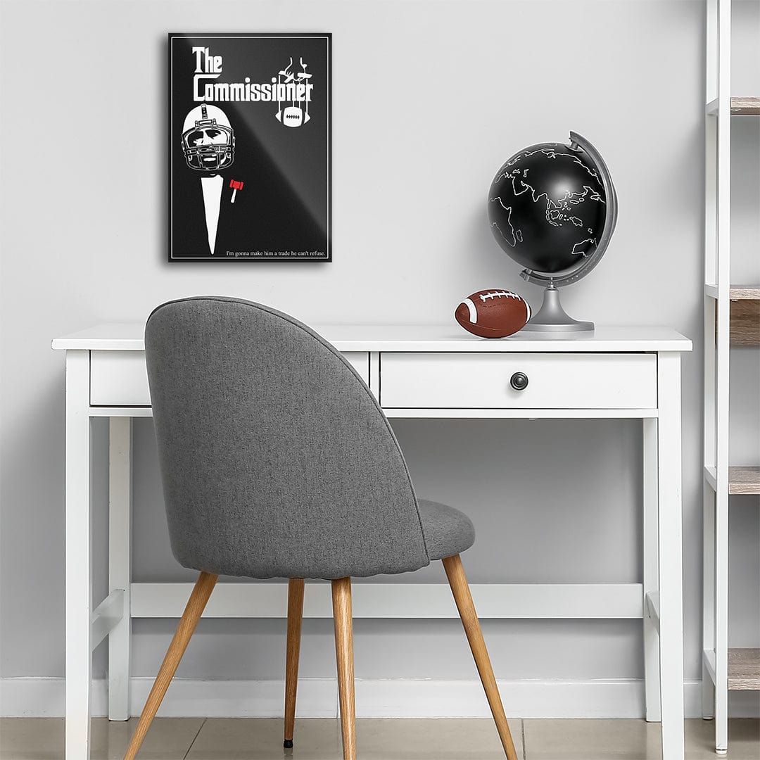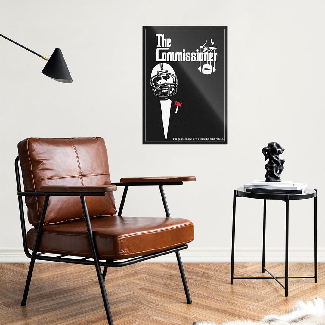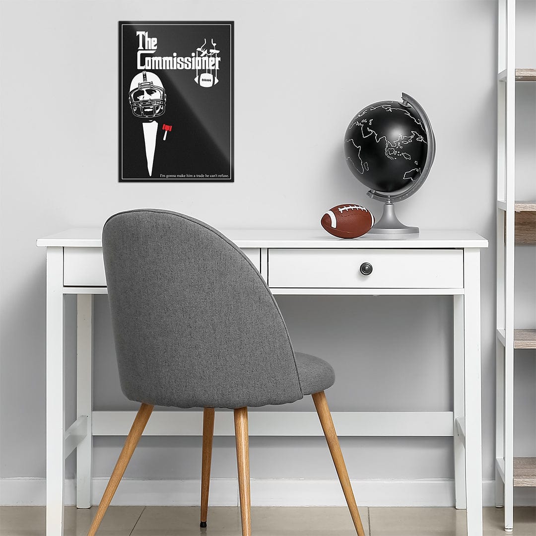 The Commissioner Poster. He'll make you an offer you cannot refuse... Whether you're redecorating or just covering that stain on your wall, WallSmack, by TrophySmack has what you need. Our Fantasy Football-inspired collection of high-gloss, sturdy, stainless steel metal wall art is sure to class up the place! Oh, and hanging is a breeze with our wall-safe magnetic mount.