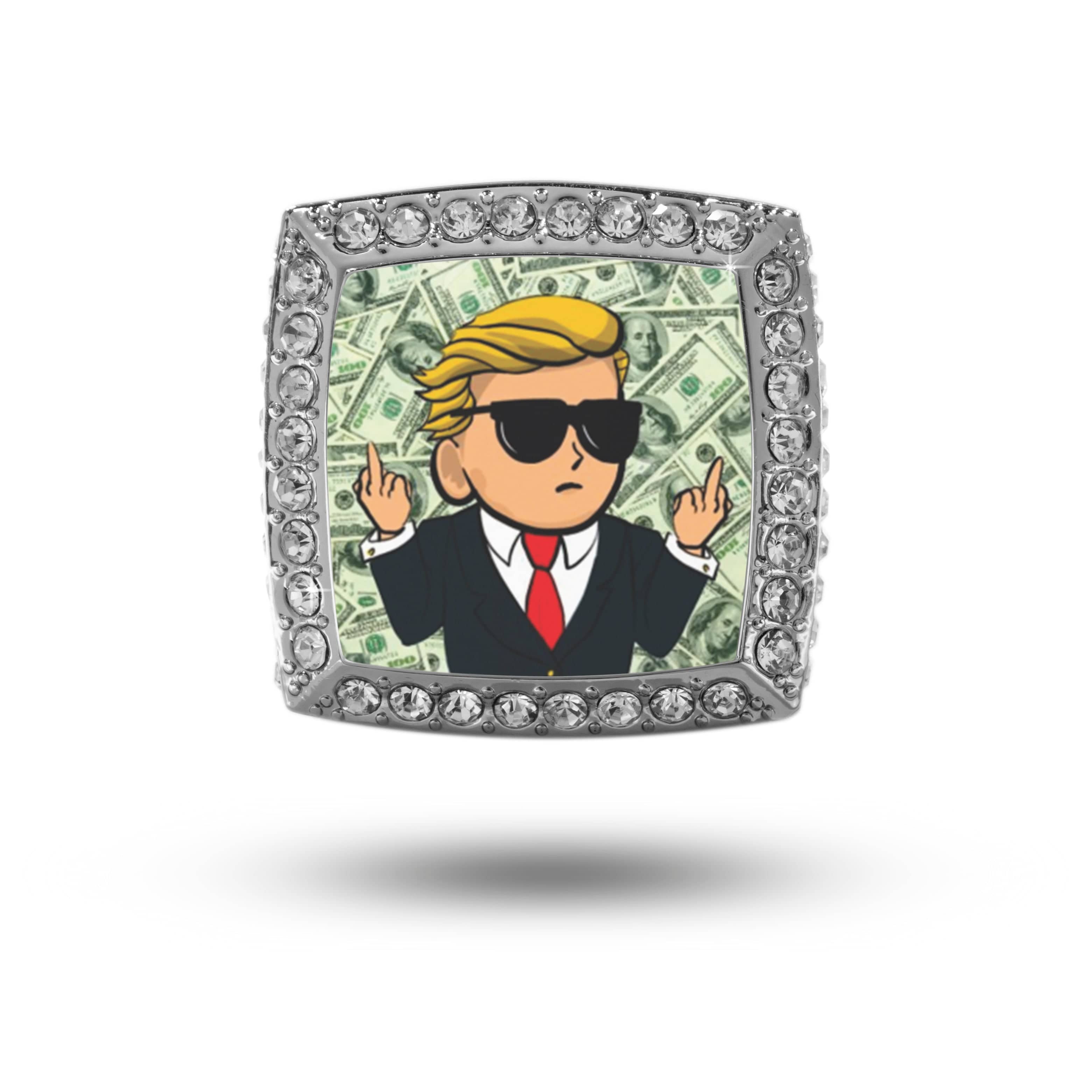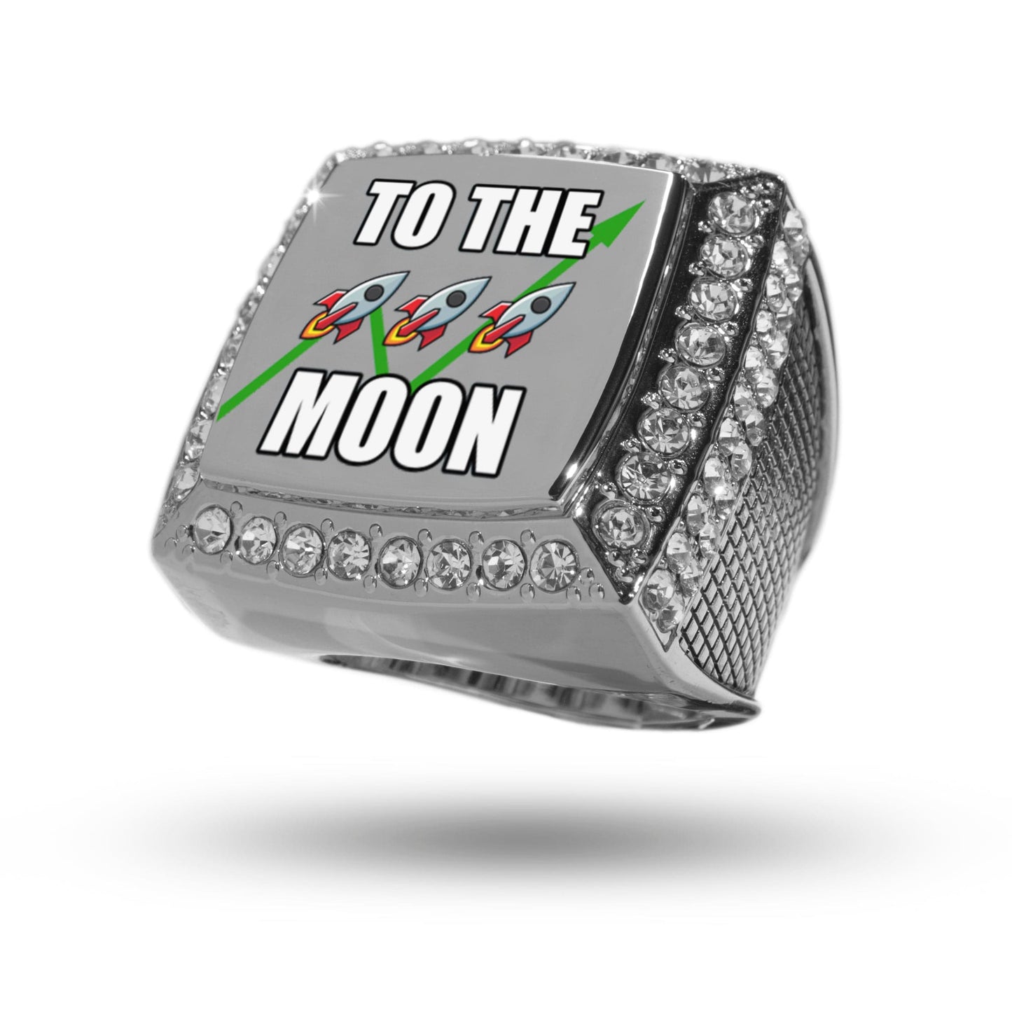 Your family laughed at you when you invested your life savings in GME. But who is laughing now, Grandma!? Introducing the all new Wall Street Bets Middle Finger Customizable Championship Ring! Wear it proudly on your middle finger as the hottest stock goes to the moon, or display it as the centerpiece on your mantle. Show the world you have diamond hands with this faux-diamond encrusted championship ring!