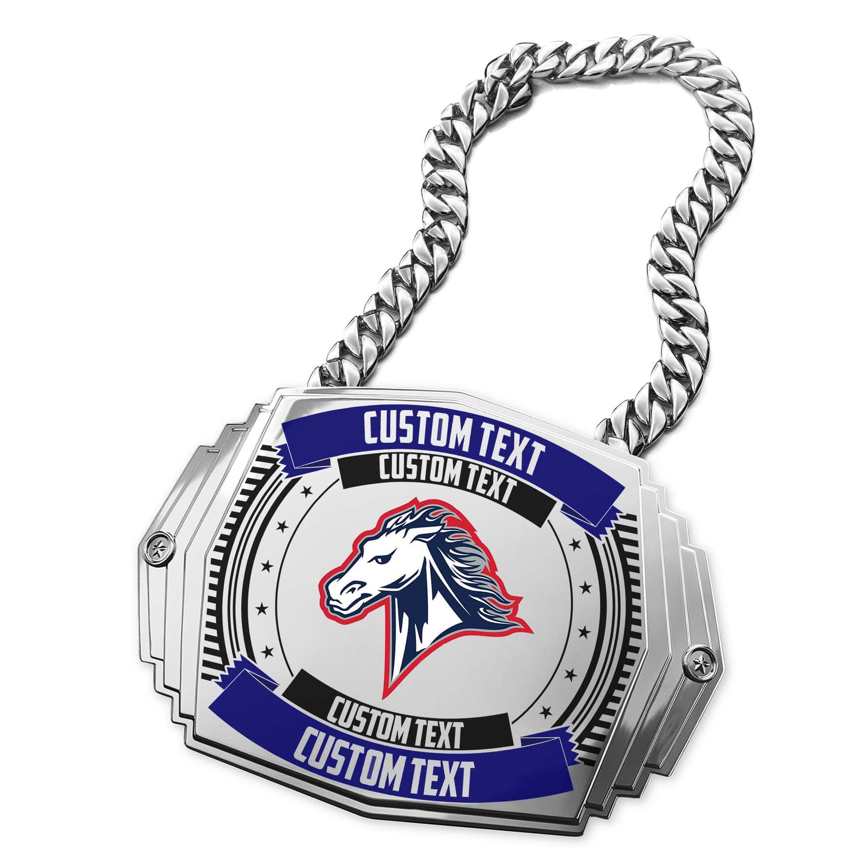 A heavyweight should never settle for one of those weak Turnover Chains you’ve seen floating around the web. This Custom Champ Chain crushes the competition. We've made this so you can proudly display your school spirit at any event.